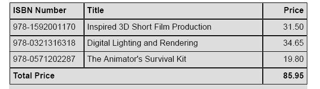 The table rows are contained inside the fo:table-body element. A table can contain any number of rows each containing any number of cells.